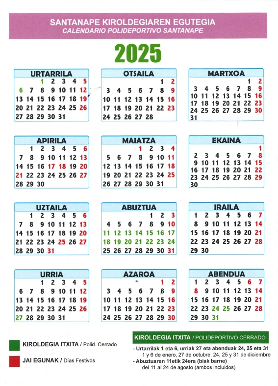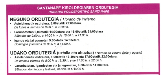 Ordutegia eta egutegia / Horario y calendario